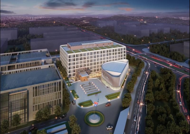 中国驻非盟使团新建馆舍工程建筑面积2.6万平方米,位于埃塞俄比亚首都亚的斯亚贝巴规划中的城市中央商务区,毗邻非盟总部,项目将与非盟会议中心共铸未来中央商务区的城市中心形象。建筑在充分考虑当地气候、城市、文化等因素的基础上,将中国文化与使馆的使用功能进行有机融合,着力构建多元、高效、宜人的特色使馆和文化传播的载体,同时体现了中非文化的汇聚共融。